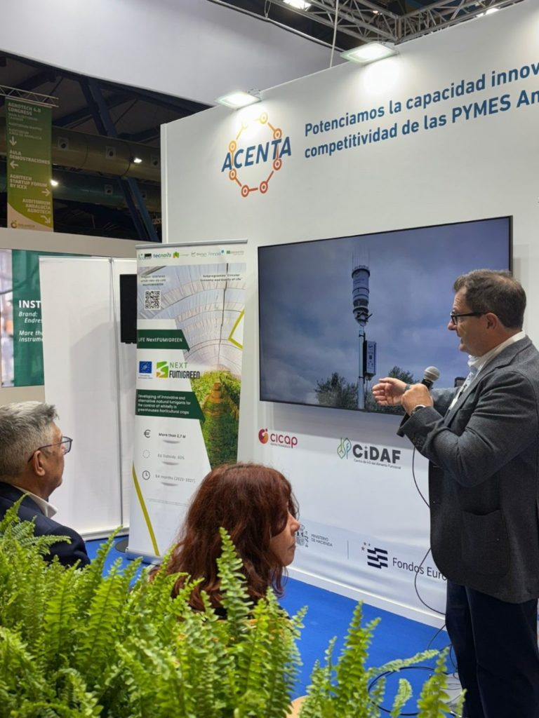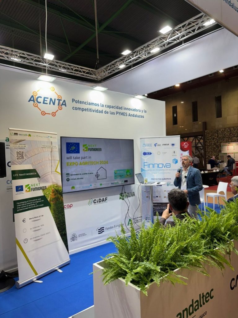 Málaga, 27 de noviembre de 2024– El 26 de noviembre, en la ExpoAGritech 2024 desarrollada en el Palacio de Ferias y Congresos de Málaga (FYCMA), los socios de proyecto LIFE NextFUMIGREEN presentaron esta iniciativa revolucionaria en el ámbito de la agricultura sostenible. LIFE NextFUMIGREEN busca desarrollar fumigantes naturales a base de extractos vegetales para combatir plagas como la mosca blanca y enfermedades como la botrytis en cultivos hortícolas bajo invernadero.