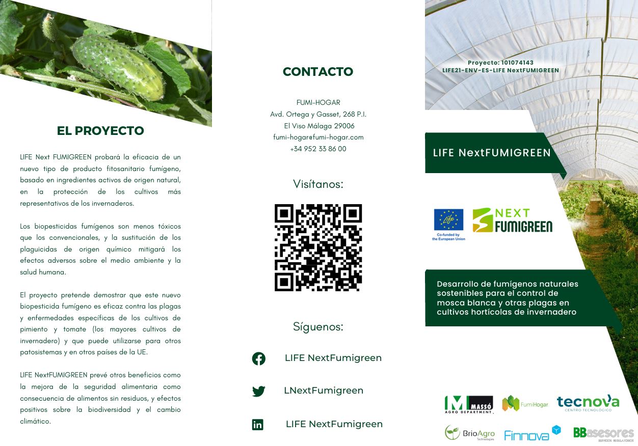 LIFE Next Fumigreen es un proyecto europeo que busca validar fumígenos naturales, con materias activas extraídas de extractos vegetales, para el control de poblaciones de mosca blanca (Bemisia tabaci y Trialeurodes vaporariorum) y otras plagas (trips, pulgones, tuta…) en cultivos hortícolas desarrollados de forma intensiva bajo invernadero.