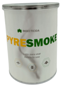 PYRESMOKE es un insecticida natural, seguro y eficaz, con una baja toxicidad, pero de rápida actividad contra insectos y efecto letal retardado. Gracias a su sistema de microdifusión en seco, PYRESMOKE realiza una dispersión homogénea de la sustancia activa en todo el volumen a tratar, consiguiendo un tratamiento integral en locales cerrados indicado para su uso en Salud Pública e Higiene Veterinaria.